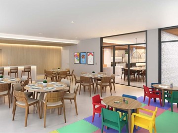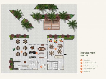 Salões de festas para adultos e crianças, com espaços gourmet.
