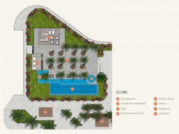 Piscinas: Adulto com 2 raias de 25m, piscina infantil e área molhada de 252,71m².