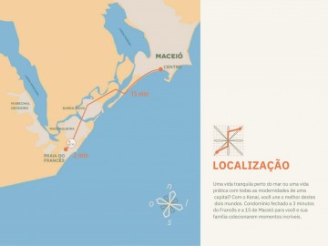 Oportunidade imperdível para você que busca qualidade de vida, tranquilidade e praticidade! O Condomínio KENAI oferece a combinação perfeita entre o sossego de um paraíso e a facilidade de estar perto da cidade. Localizado a apenas 15 minutos de Maceió e 2 minutos da Praia do Francês, você estará rodeado pela beleza natural de Alagoas, sem abrir mão das comodidades que a vida moderna proporciona.